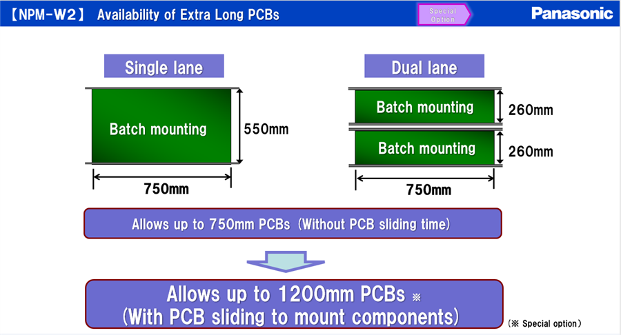- Può gestire 1 PCB fino a 750x550 mm di grandezza (single line) o 2 PCB in contemporanea da 750x260 mm (dual line).